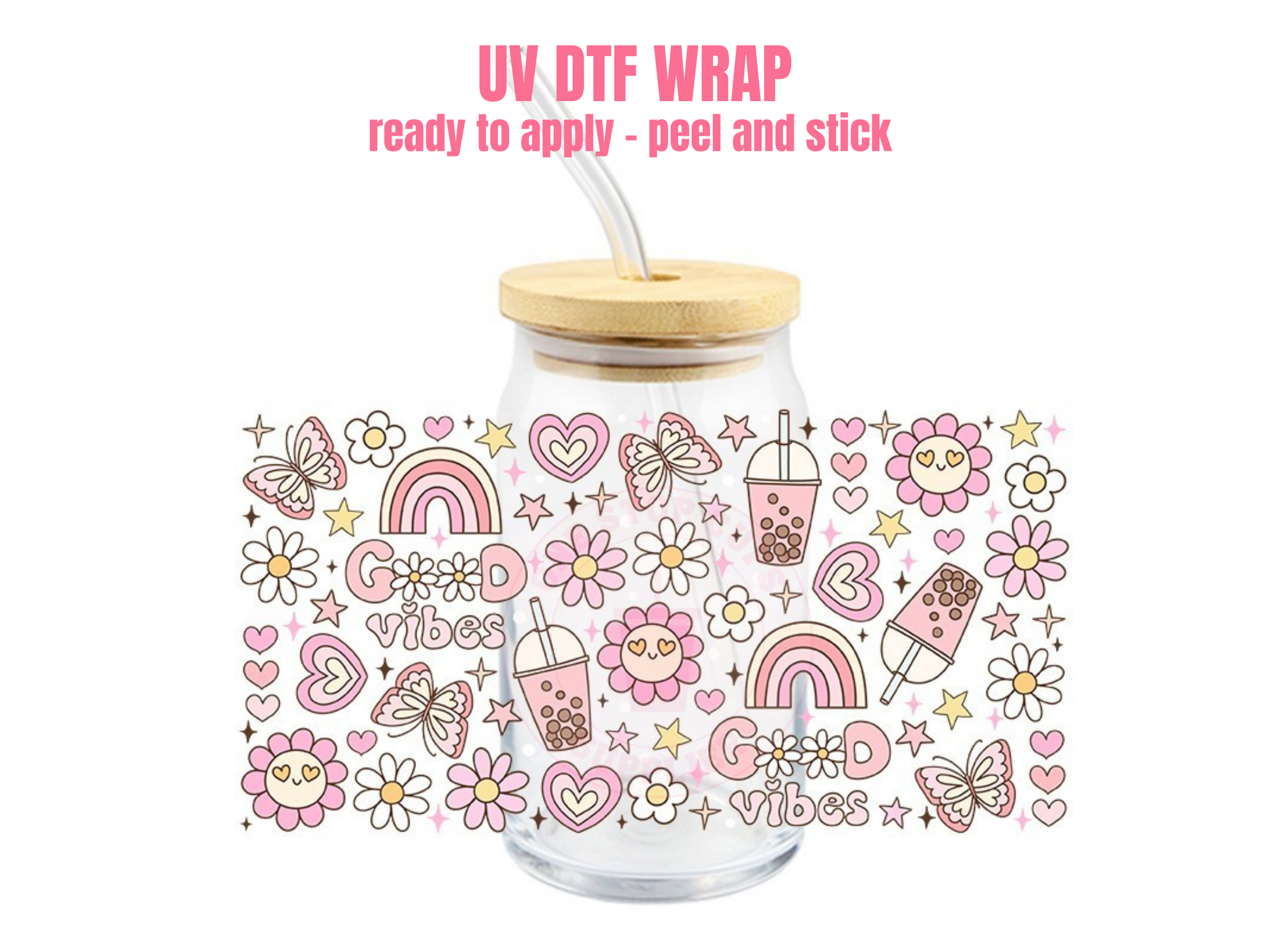 This listing is for one (1) UV DTF adhesive cup wrap for a 16oz Glass Cup size.