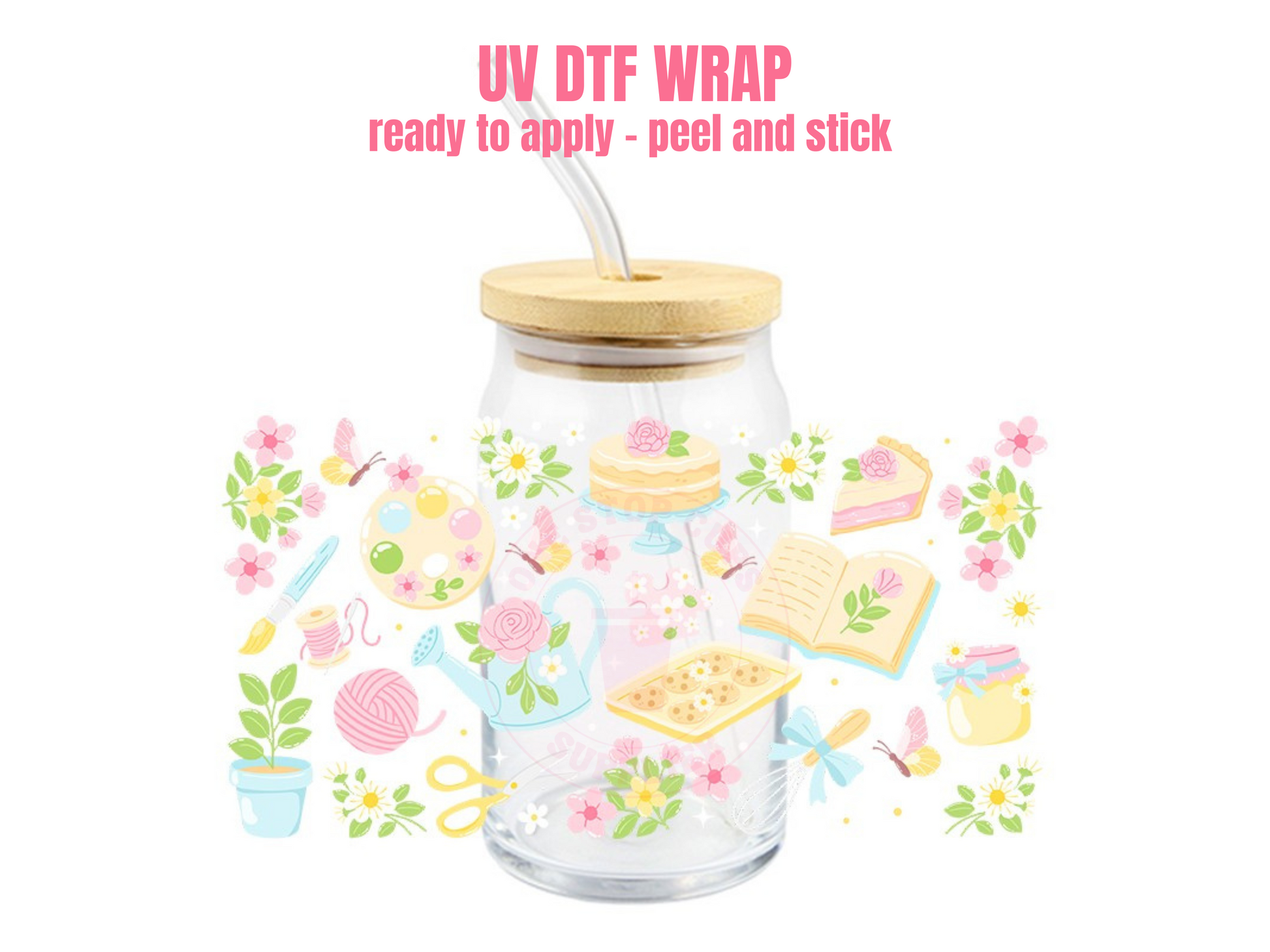 This listing is for one (1) UV DTF adhesive cup wrap for a 16oz Glass Cup size.