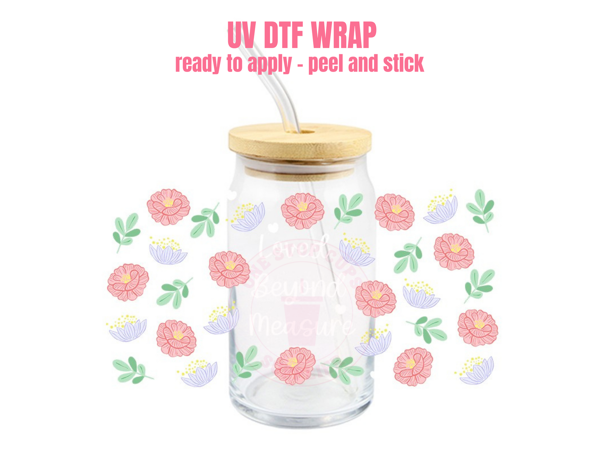 This listing is for one (1) UV DTF adhesive cup wrap for a 16oz Glass Cup size.