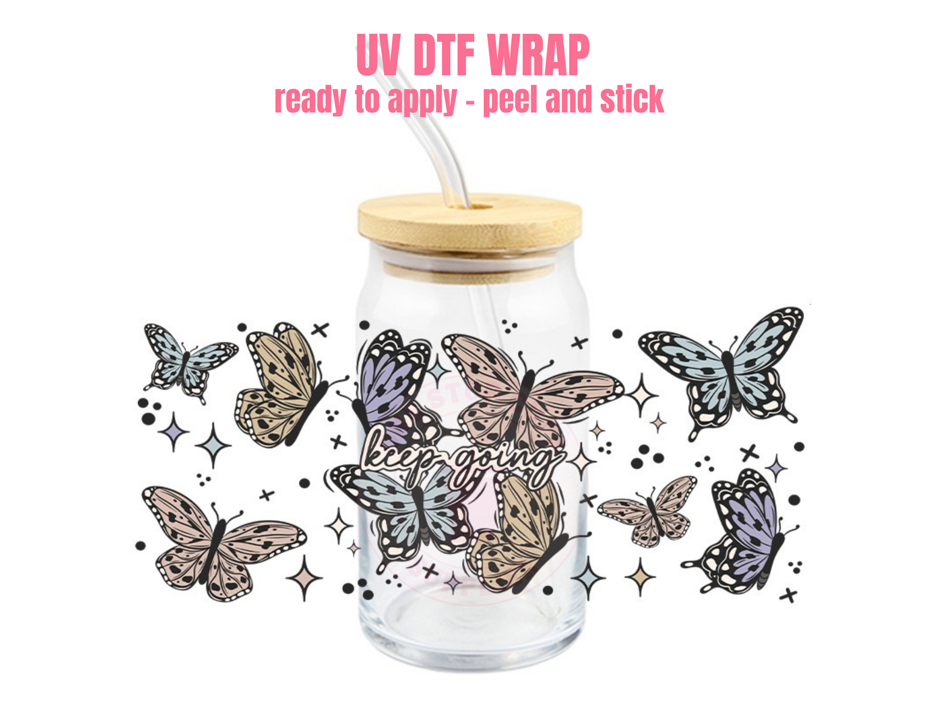 This listing is for one (1) UV DTF adhesive cup wrap for a 16oz Glass Cup size.