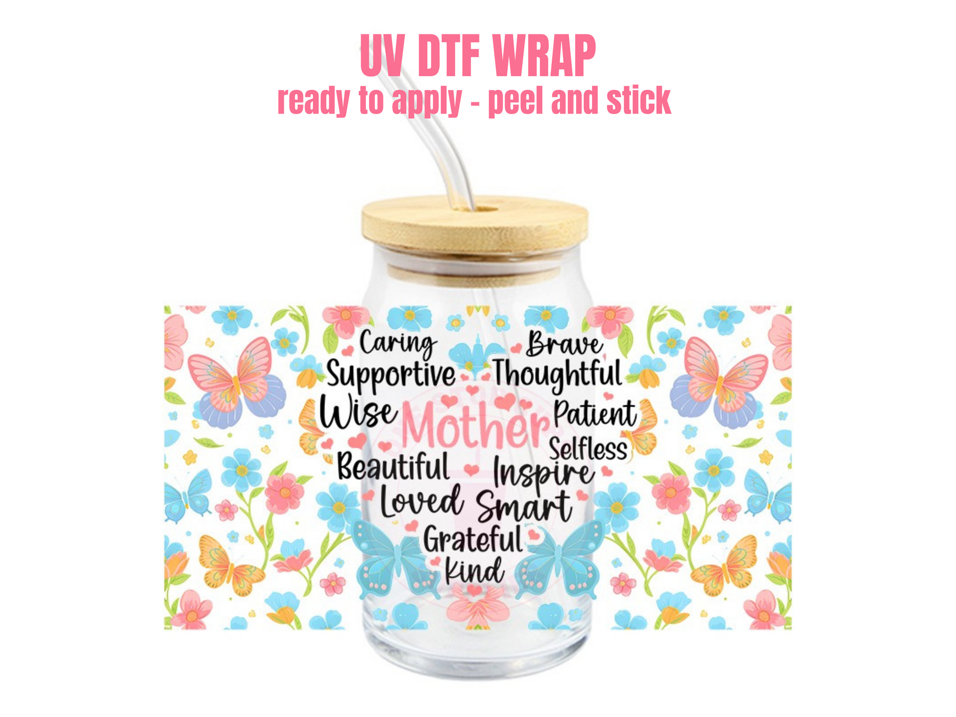 This listing is for one (1) UV DTF adhesive cup wrap for a 16oz Glass Cup size.