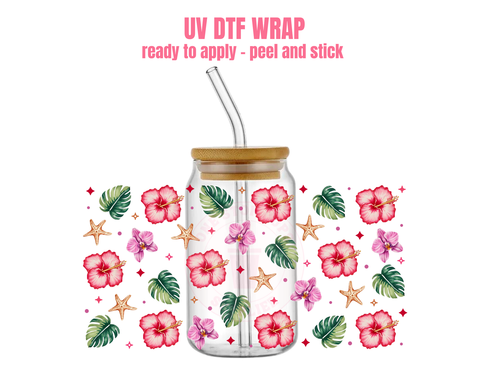 This listing is for one (1) UV DTF adhesive cup wrap for a 16oz Glass Cup size.