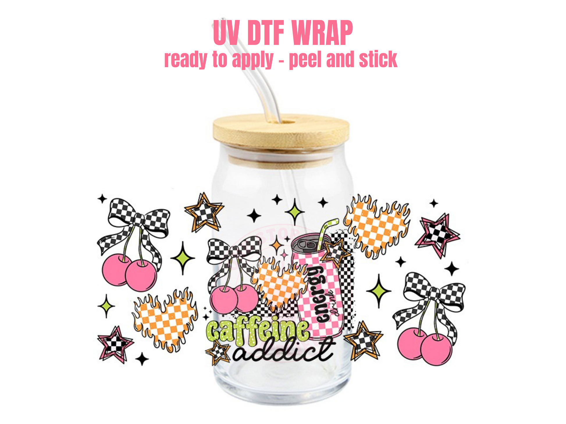 UV DTF Cup Wrap for 16oz Glass Can – Adhesive Transfer