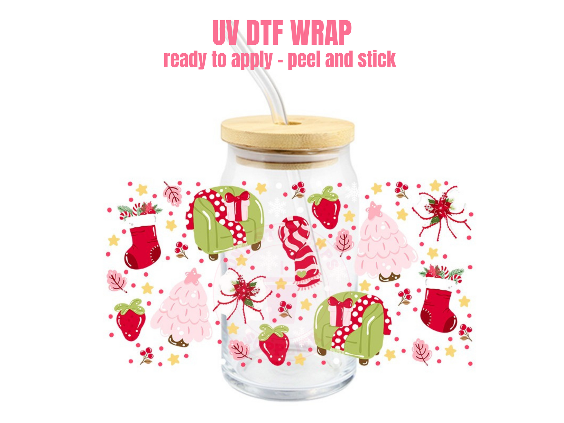 UV DTF Cup Wrap for 16oz Glass Can – Adhesive Transfer