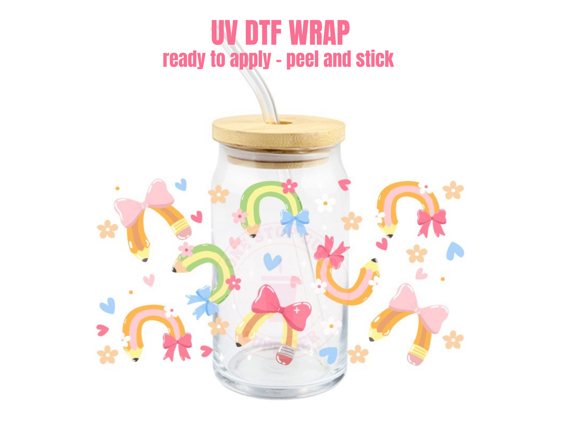 Add a custom look to your glass can with this high-quality UV DTF adhesive cup wrap. Perfect for 16oz glass cups, tumblers, and more.