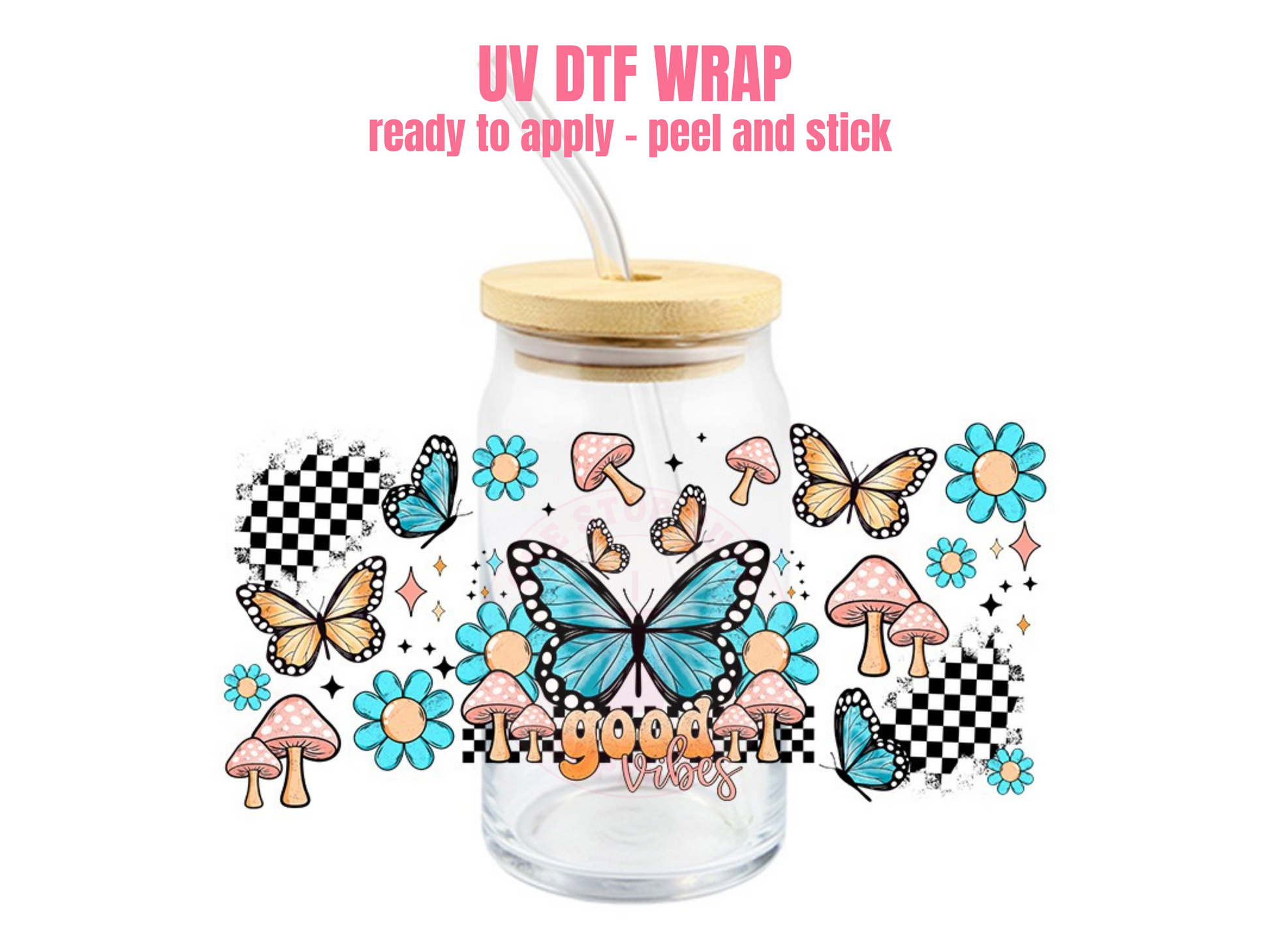 This listing is for one (1) UV DTF adhesive cup wrap for a 16oz Glass Cup size.
